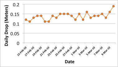 This implies, that despite the rain the daily drop in height has not slowed down, in fact, it has increased: