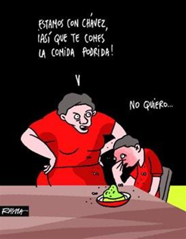 (We are with Chavez, you better eat the rotten food. Kid: I don’t want to)