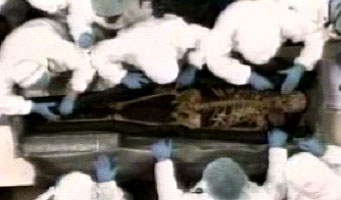 The whole scene looked like a combination of of Close Encounters and Rosemary’s baby, with all sorts of people that should not be there present, from the Minister of the Interior to Chavez himself, who said he had been there (we did not see it) and cried when he saw this “live” body (His words, not mine)