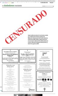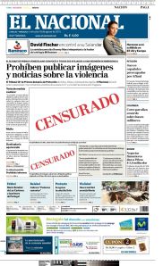 Using tactics not seen since the dictatorship of Marco Perez Jimenez in the 50’s, today’s El Nacional shows the word “Censored” in each of the pages where it had to remove material because of yesterday’s order by the Judge banning pictures of violent events in order to protect children.
