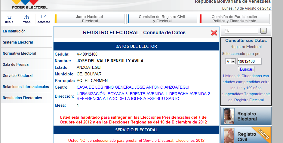 There are two problems that have yet to be cleared up in the Electoral Registry. First, there continues to be roughly 18 thousand id’s associated to 9 thousand people and dead people have not been removed sufficiently fast from it. Both these issues are being discussed with the CNE and particularly the first on is expected to be solved before October 7th.