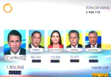 The debate was structured around questions and then candidates could come back and say how they disagreed with answers or how they would do things differently. It would be meaningless for me to do a blow by blow of the debate, even if I do have the notes. Instead, I will give a summary of how I saw it and will comment at the end on Leopoldo Lopez’ hinting that he and Capriles will be joining forces.